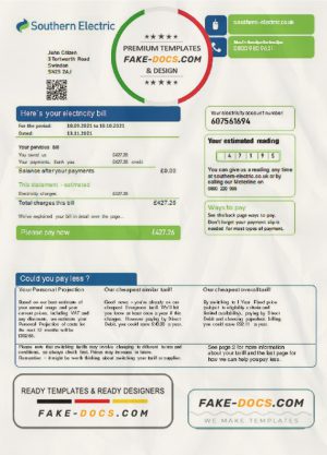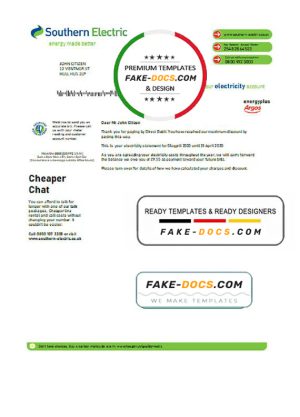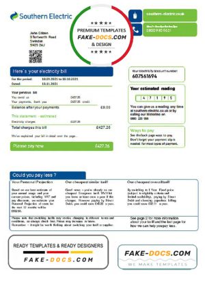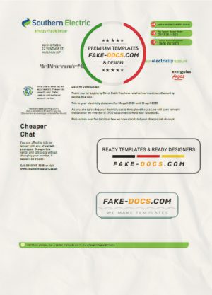 United Kingdom Southern Electric proof of address utility bill template in Word and PDF format