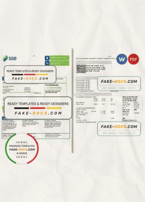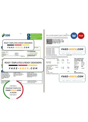 United Kingdom SSE Energy utility bill, Word and PDF template, 4 pages