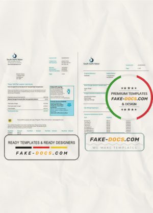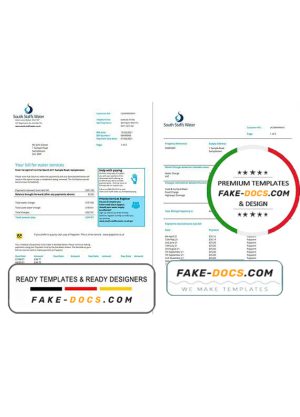 United Kingdom South Staffs Water utility bill template in Word and PDF format, 2 pages
