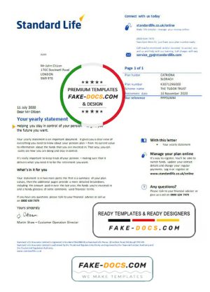 United Kingdom Standard Life utility bill template in Word and PDF format