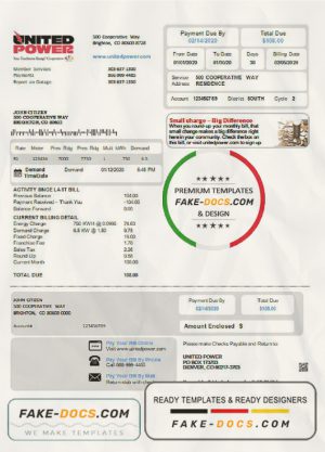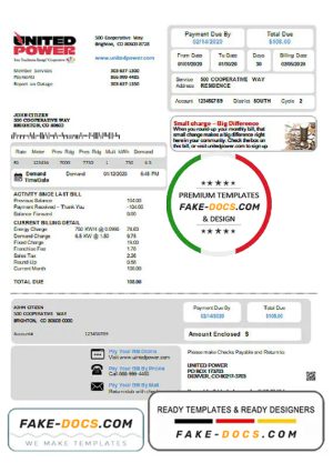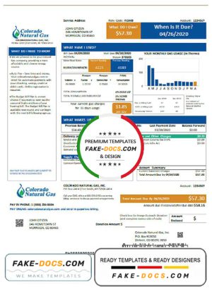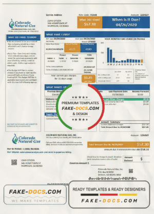 USA Colorado Natural Gas utility bill template in Word and PDF format