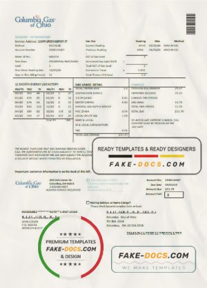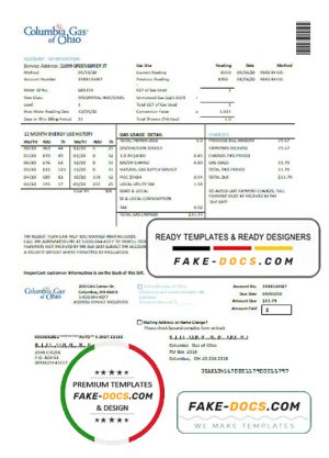 USA Columbia Gas of Ohio utility bill template in Word and PDF format