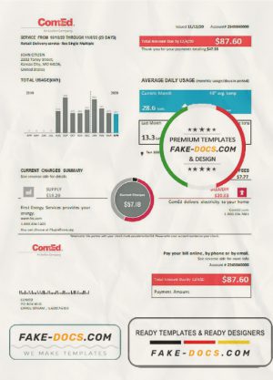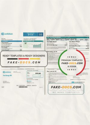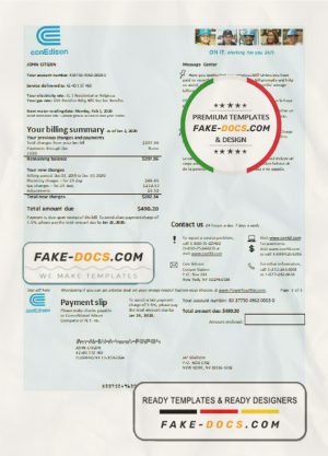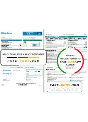 USA Con Edison utility bill template in Word and PDF format, 2 pages (2021 April – present)