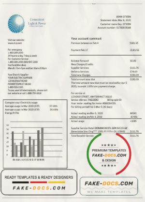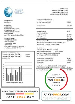 USA Connecticut Light & Power electricity utility bill in Word and PDF format