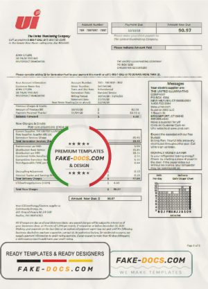 USA Connecticut The United Illuminating Company electricity utility bill template in Word and PDF format