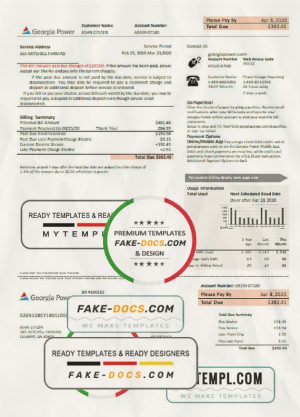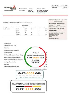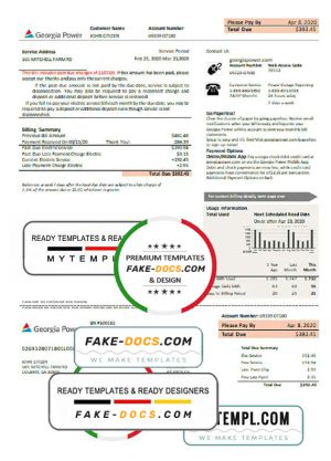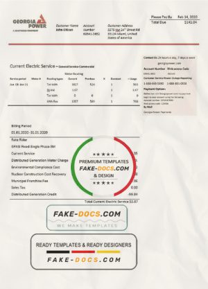 USA Georgia Power utility bill template in Word and PDF format, fully editable