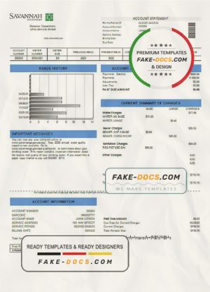 USA Georgia Savannah utility bill template in Word and PDF format