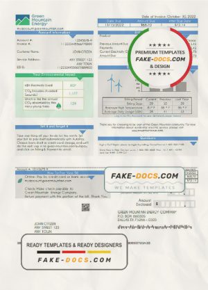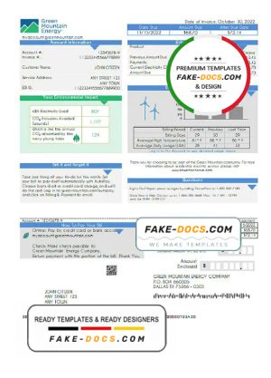 USA Green Mountain Energy utility bill template in Word and PDF format