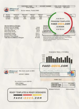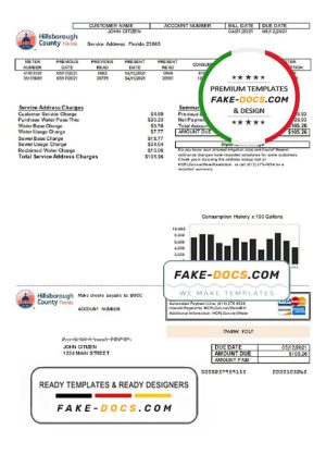 USA Hillsborough County utility bill template in Word and PDF format