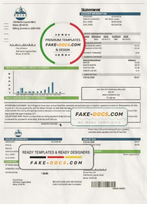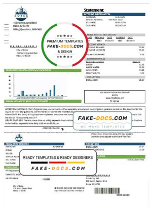 USA Idaho Boise City of Trees water utility bill template in Word and PDF format