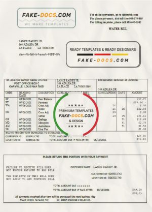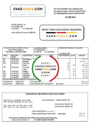USA Louisiana St. John the Baptist Parish water bill in Word and PDF format
