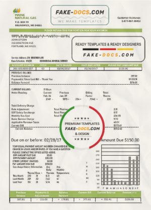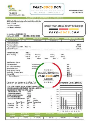 USA Maine Natural Gas Portland utility bill template in Word and PDF format