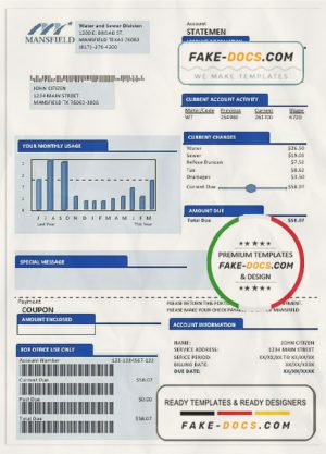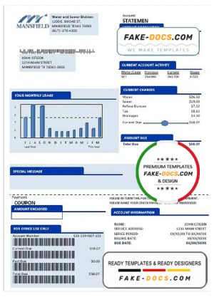 USA Mansfield Texas utility bill template in Word and PDF format (.doc and .pdf)