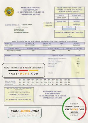 USA Marblehead Municipal Light Department utility bill template in Word and PDF format
