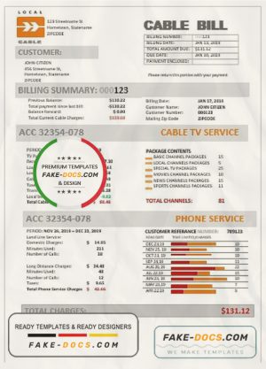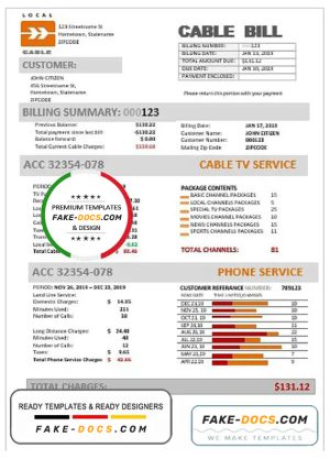 USA Marine Local Cable utility bill template in Word and PDF format (.doc and .pdf)