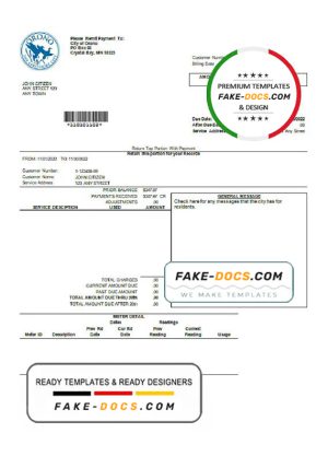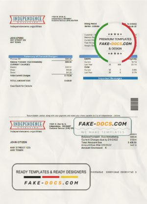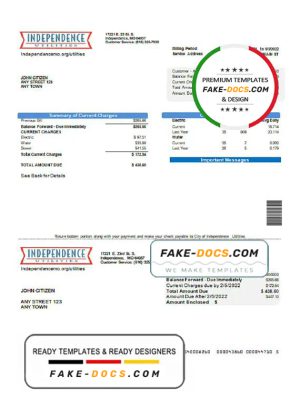 USA Missouri Independence Utilities utility bill template in Word and PDF format