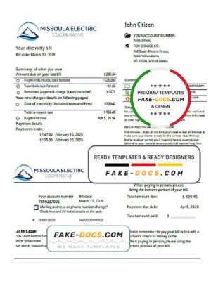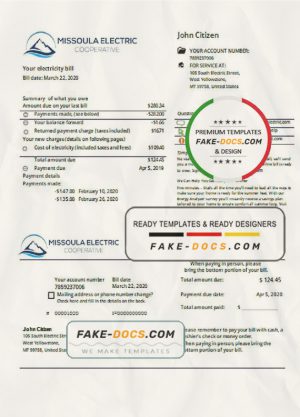 USA Montana Missoula Electric Cooperative electricity utility bill template in Word and PDF format