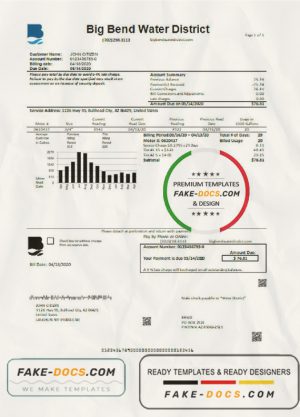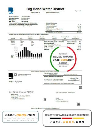 USA Nevada Big Bend Water District utility bill template in Word and PDF format