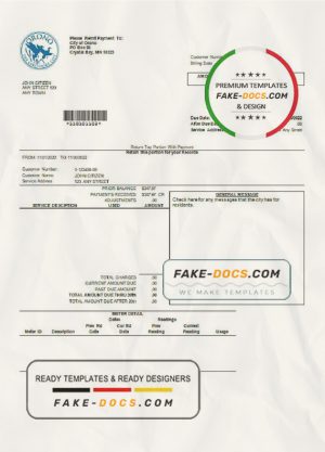 USA Nevada Orono The Lakehore City utility bill template in Word and PDF format