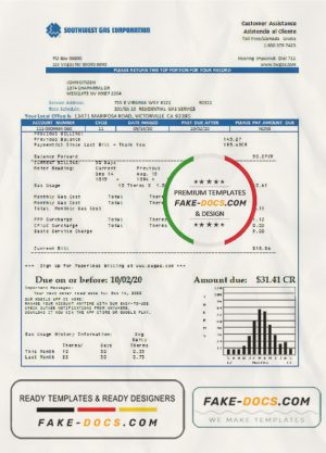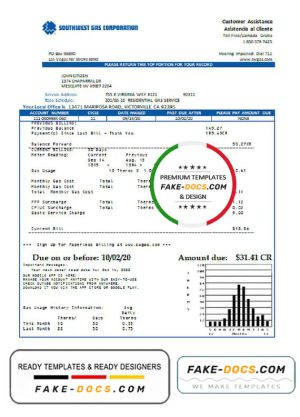 USA Nevada Southwest gas Corporation utility bill template in Word and PDF format