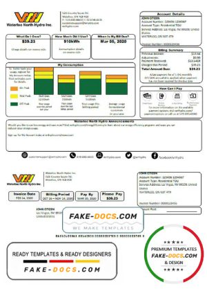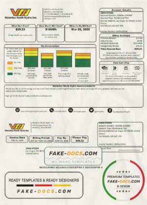 USA Nevada Waterloo North Hydro utility bill template in Word and PDF format (version 2)