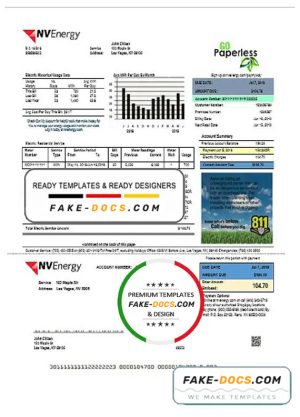 USA Nevada NV Energy utility bill template in Word and PDF format