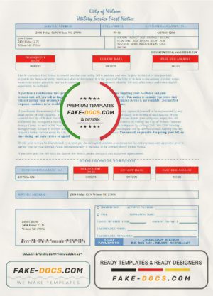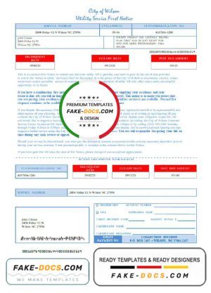 USA North Carolina City of Wilson utility bill template in Word and PDF format