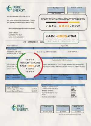 USA North Carolina Duke Energy utility bill template in Word and PDF format