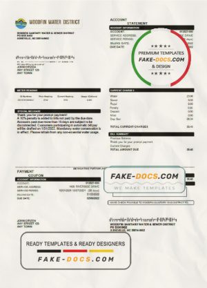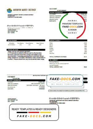 USA North Carolina Woodfin Sanitary Water & Sewer District utility bill template in Word and PDF format