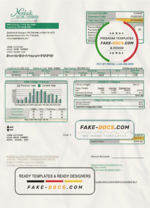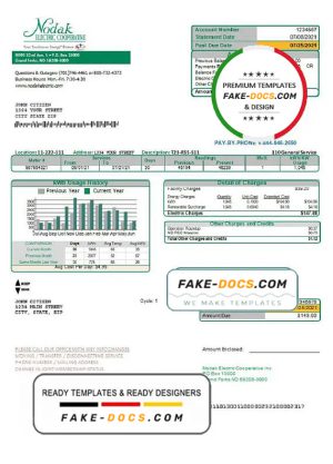 USA North Dakota Nodak Electric Cooperative utility bill template in Word and PDF format