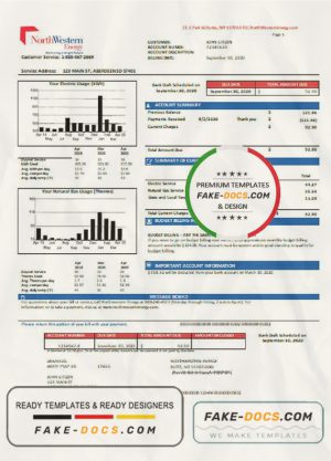 USA Northwestern Rural Electric utility bill template, fully editable in Word and PDF format