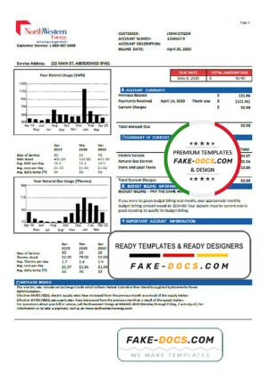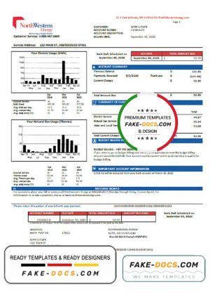 USA NorthWestern Energy utility bill template in Word and PDF format, version 2