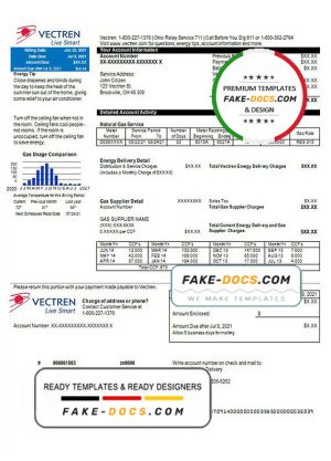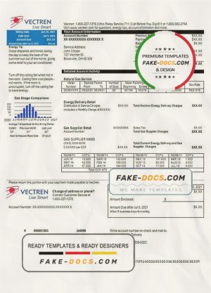 USA Ohio Vectren Energy utility bill template in Word and PDF format