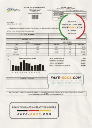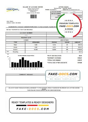 USA Ohio Village of Jackson Center Public Power utility bill template in Word and PDF format