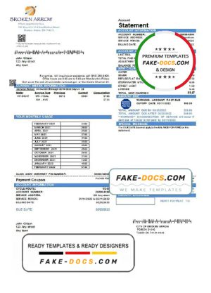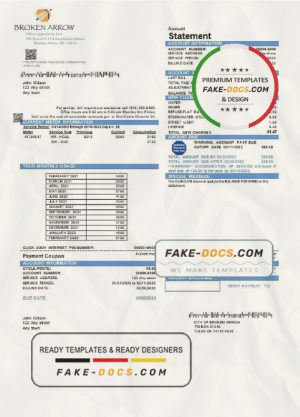 USA Oklahoma City of Broken Arrow utility bill template in Word and PDF format