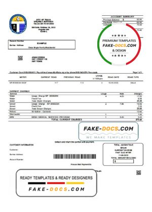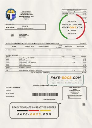 USA Oklahoma City of Tulsa utility bill template in Word and PDF format