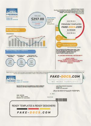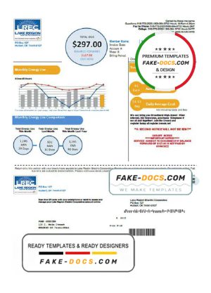 USA Oklahoma LREC Lake Region utility bill template in Word and PDF format