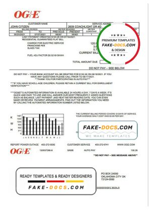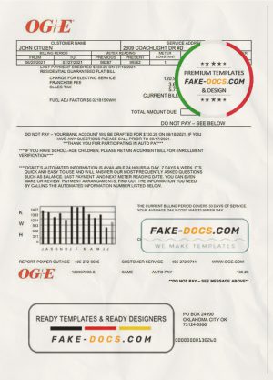 USA Oklahoma OGE Energy utility bill template in Word and PDF format