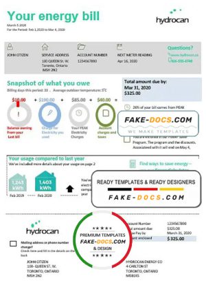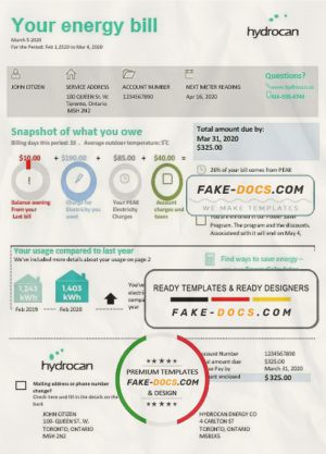 USA Ontario Hydrocan electricity utility bill template in Word and PDF format