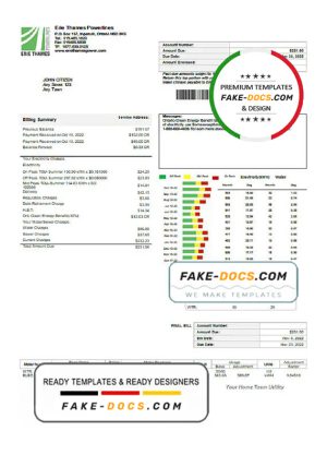 USA Ontario Erie Thames utility bill template in Word and PDF format