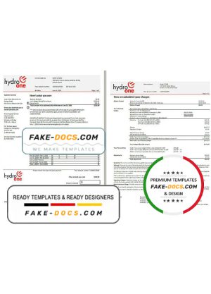 USA Ontario’s Hydro One electricity utility bill template in Word and PDF format (2 pages)