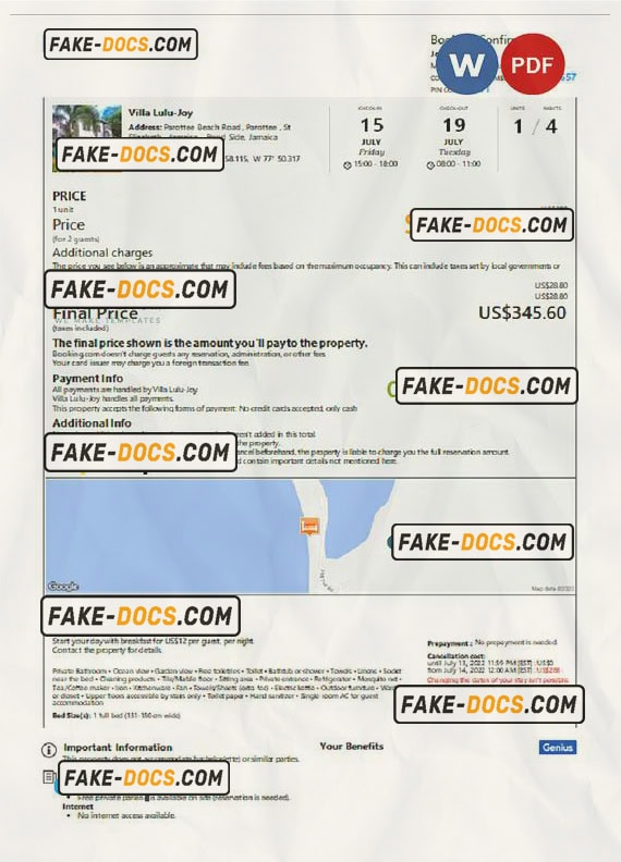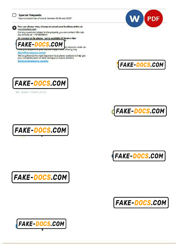 Jamaica hotel booking confirmation Word and PDF template, 2 pages