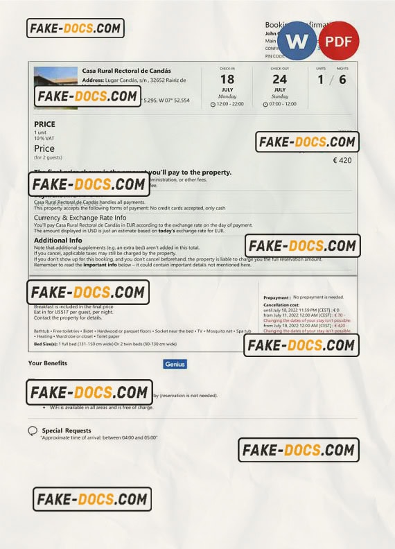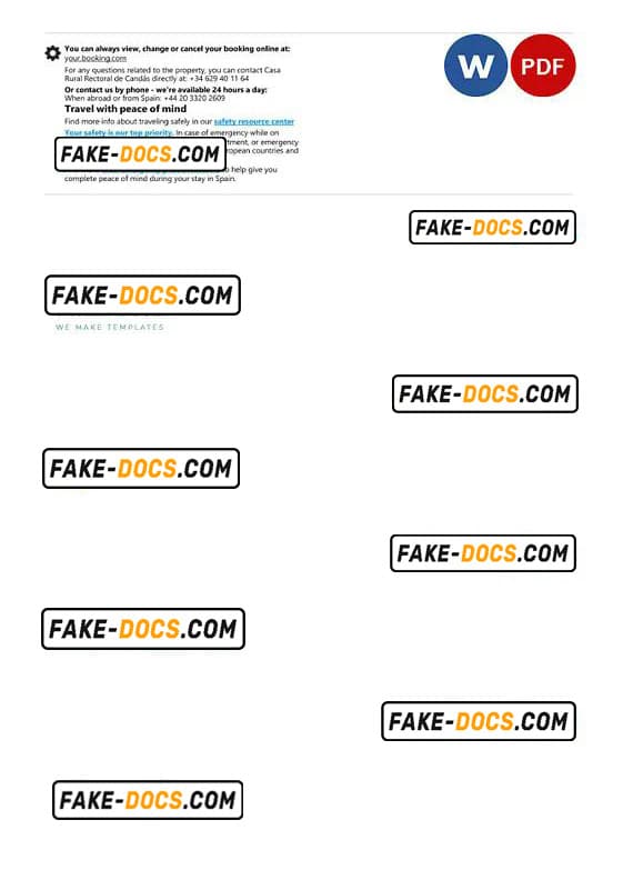 Spain hotel booking confirmation Word and PDF template, 2 pages
