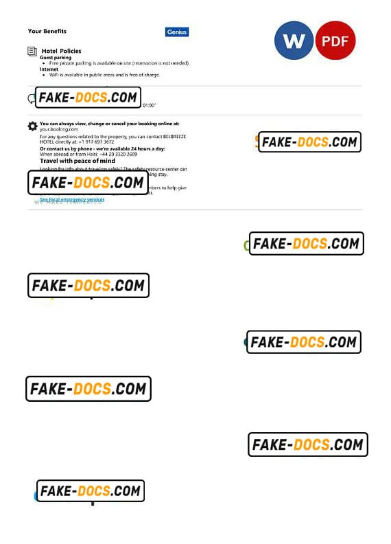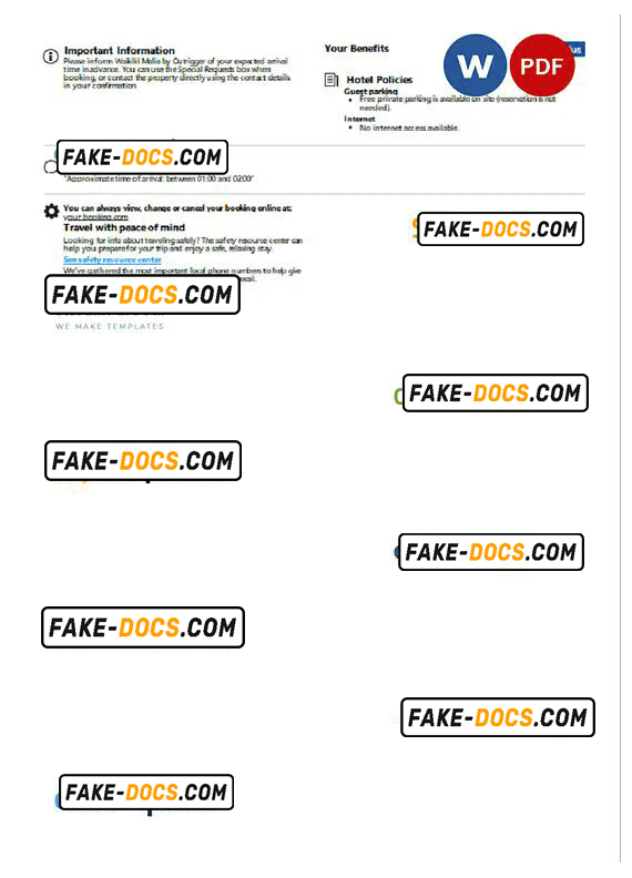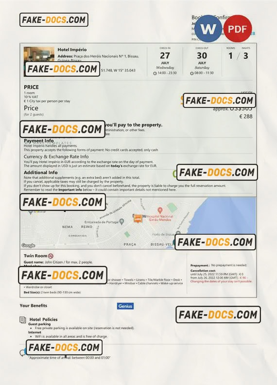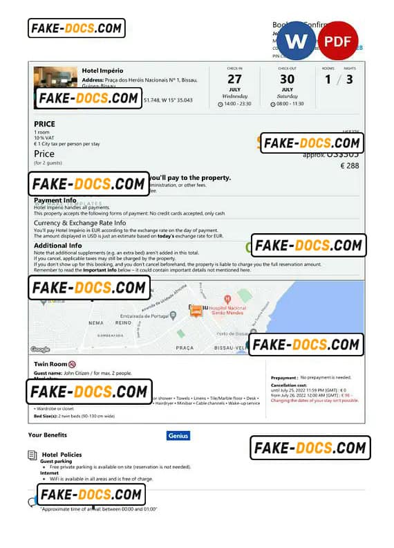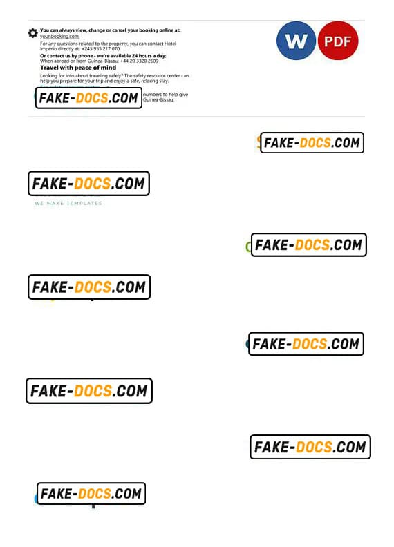 Guinea-Bissau hotel booking confirmation Word and PDF template, 2 pages