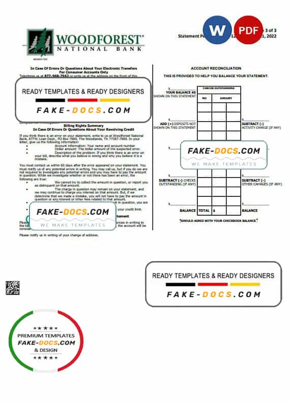 Australia Woodforest National Bank Statement Word template . Fully editable Word template. High quality template. Easy to customize, Layer based, fonts included. you can edit this template and put any name, address, license number, Id number, birth date, height, weight, expire date, change photos etc. This Word template is a easy to Editing.To modify this Word template file you will need a Word editing software such as Microsoft Word. Never used low quality template. Your account may be suspended.