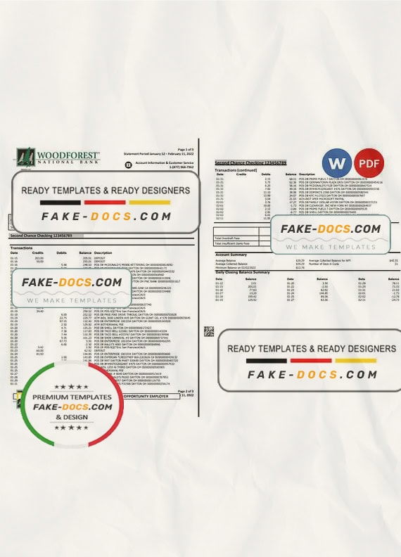 Grab now fully editable Australia Woodforest National Bank Statement Word Template from our website Fake Docs and put your own info to create Fake Bank Statement Word template and ready your own novelty documents. It’ll be so beneficial if your Bank Statement is expired, stolen or not available. We also have passport psd template, ID Card psd template, Bank Statement psd template, drivers license psd template & Utility bill psd template