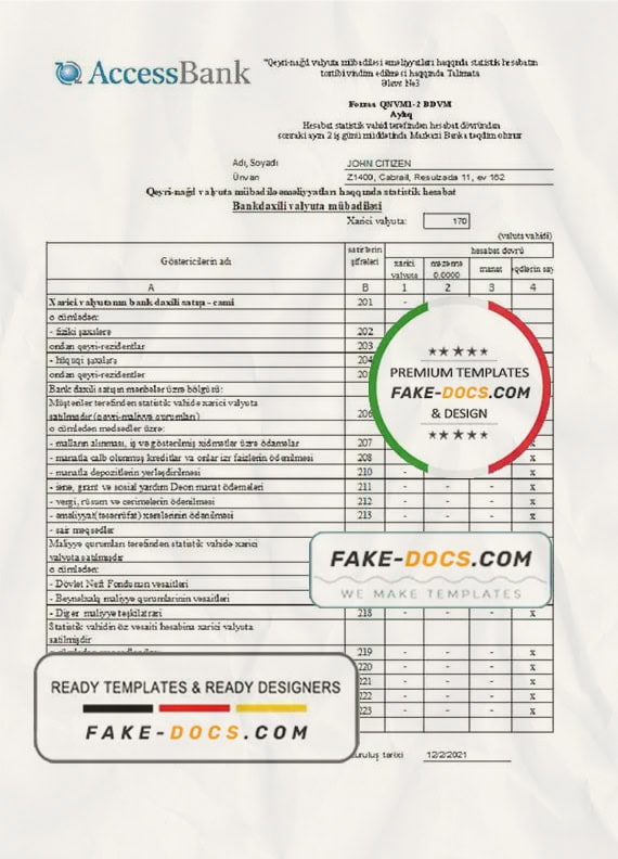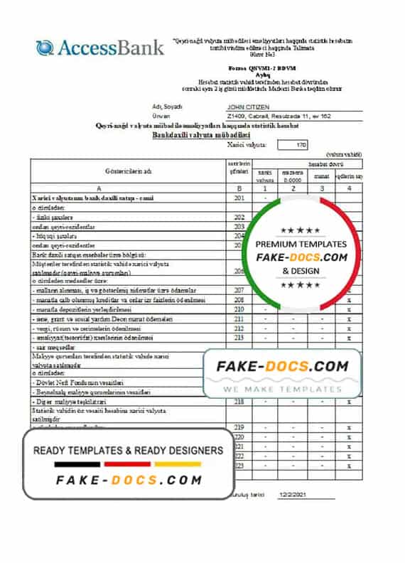 Grab now fully editable Azerbaijan Access Bank Statement Excel Template from our website Fake Docs and put your own info to create Fake Bank Statement template Excel and ready your own novelty documents. It’ll be so beneficial if your Bank Statement is expired, stolen or not available. We also have passport psd template, ID Card psd template, Bank Statement psd template, drivers license psd template & Utility bill psd template