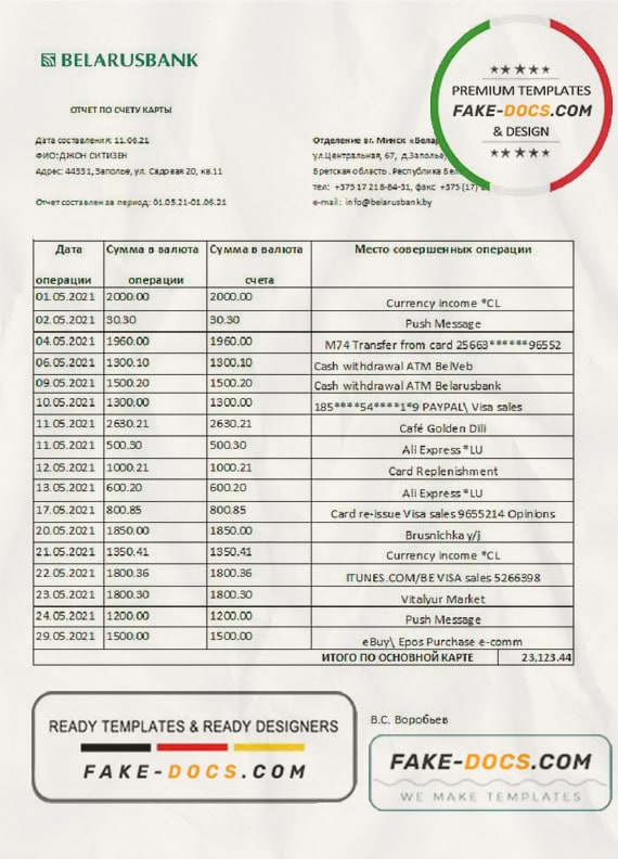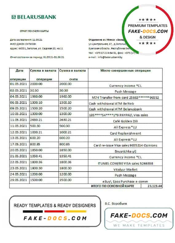 Grab now fully editable Belarus Belarusbank Bank Statement Excel Template from our website Fake Docs and put your own info to create Fake Bank Statement template Excel and ready your own novelty documents. It’ll be so beneficial if your Bank Statement is expired, stolen or not available. We also have passport psd template, ID Card psd template, Bank Statement psd template, drivers license psd template & Utility bill psd template