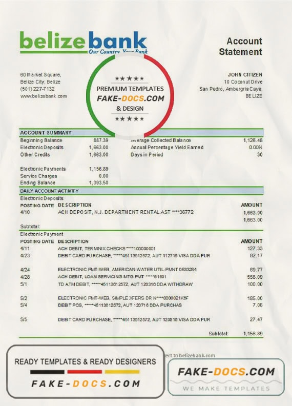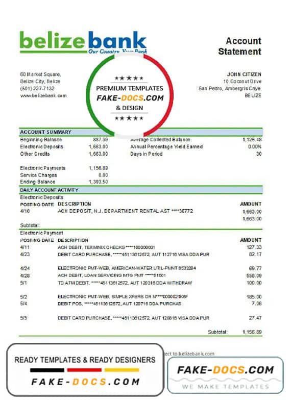 Grab now fully editable Belize Belizebank Bank Statement Excel Template from our website Fake Docs and put your own info to create Fake Bank Statement template Excel and ready your own novelty documents. It’ll be so beneficial if your Bank Statement is expired, stolen or not available. We also have passport psd template, ID Card psd template, Bank Statement psd template, drivers license psd template & Utility bill psd template