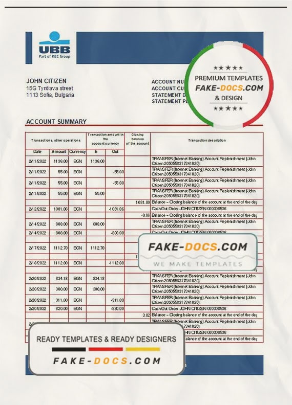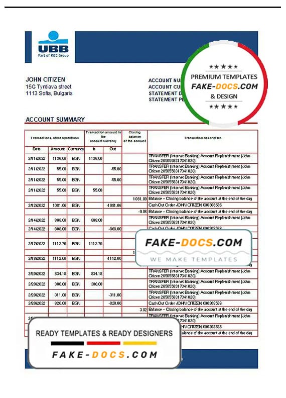 Grab now fully editable Bulgaria UBB Bank Statement Excel Template from our website Fake Docs and put your own info to create Fake Bank Statement template Excel and ready your own novelty documents. It’ll be so beneficial if your Bank Statement is expired, stolen or not available. We also have passport psd template, ID Card psd template, Bank Statement psd template, drivers license psd template & Utility bill psd template